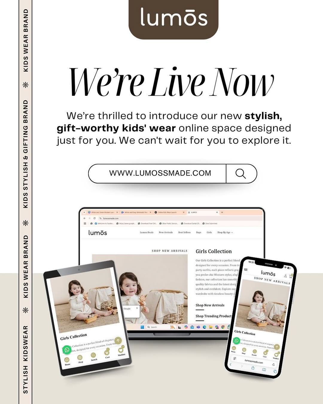 At LumossMade, we blend style, comfort, and quality to create trendy, breathable kids' wear. Designed for little explorers, our collections bring fashion-forward designs with a playful touch, ensuring your child shines in every moment.