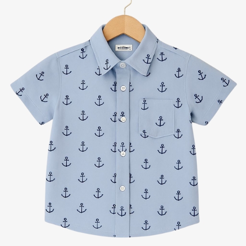 Sky blue cotton shirt with playful anchor print. Soft, breathable, and perfect for everyday adventures.