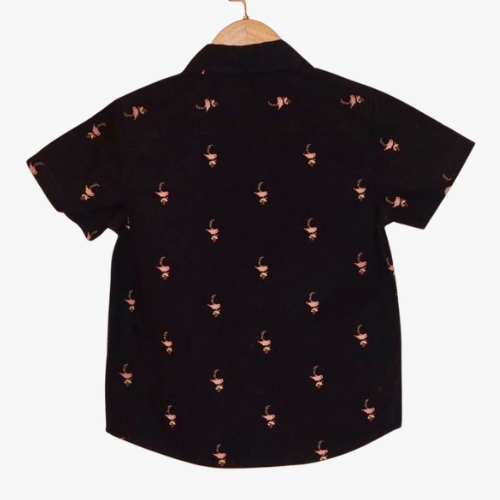 Navy cotton shirt with playful bird print. Soft, stylish, and perfect for any casual day.