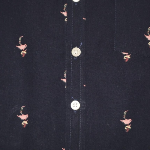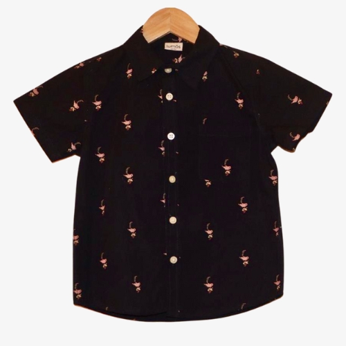 Navy cotton shirt with playful bird print. Soft, stylish, and perfect for any casual day.